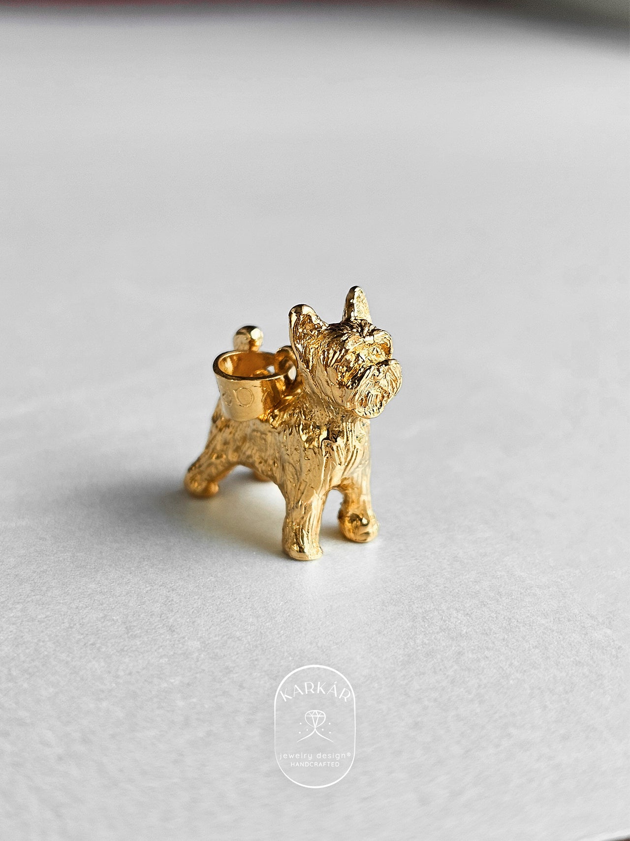 Lleva contigo una joya única y significativa: un dije en forma de Yorkie.